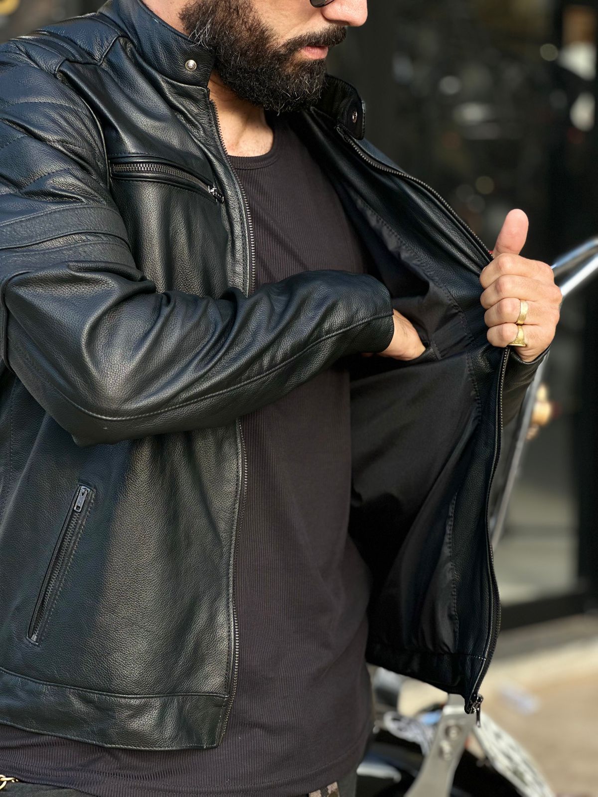 • Couro Bovino de Primeira Qualidade: Feita com couro bovino 100% legítimo, nossa jaqueta é sinônimo de autenticidade e durabilidade;